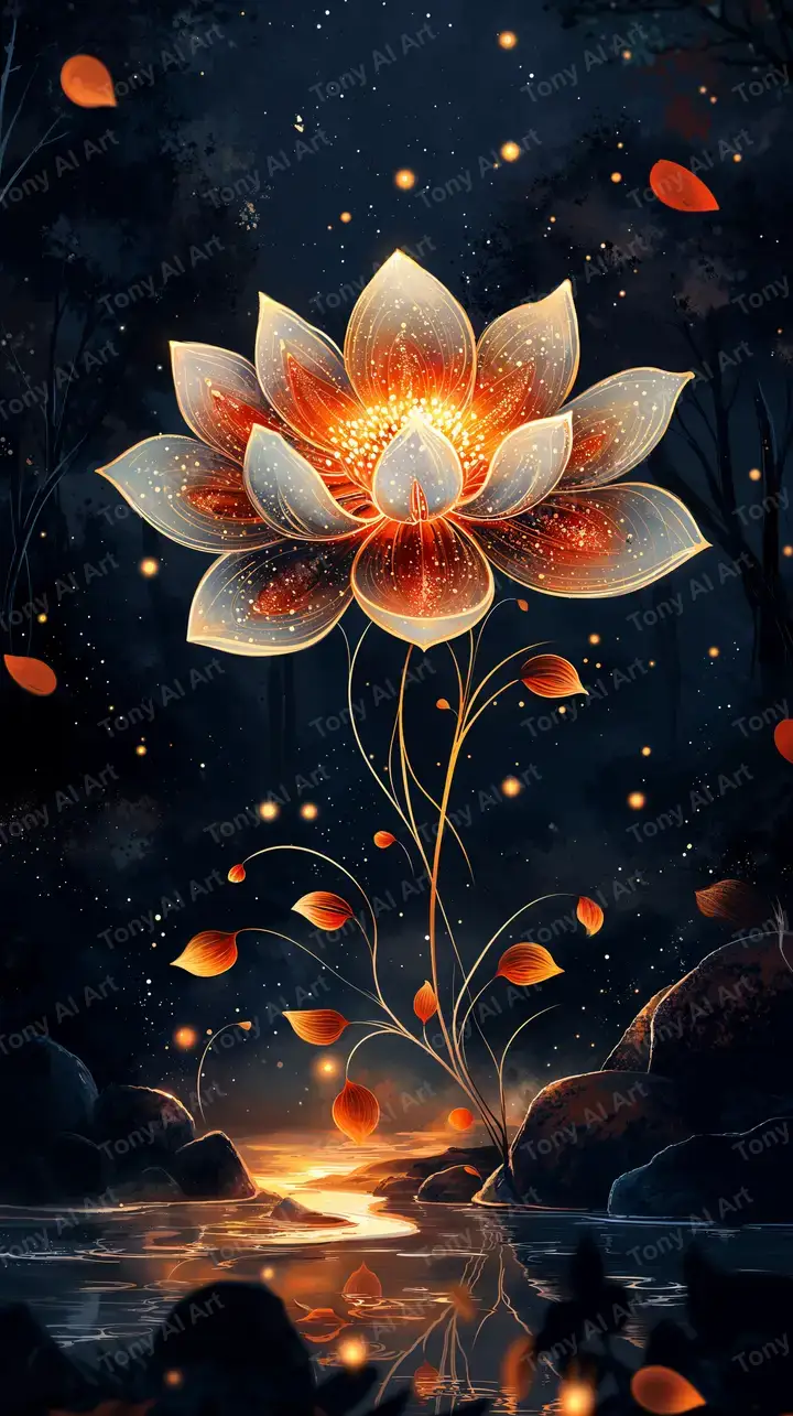 Hình nền hoa sen neon phong thủy với hiệu ứng cosmic glow, tải miễn phí 4K, AI art đẹp mắt.