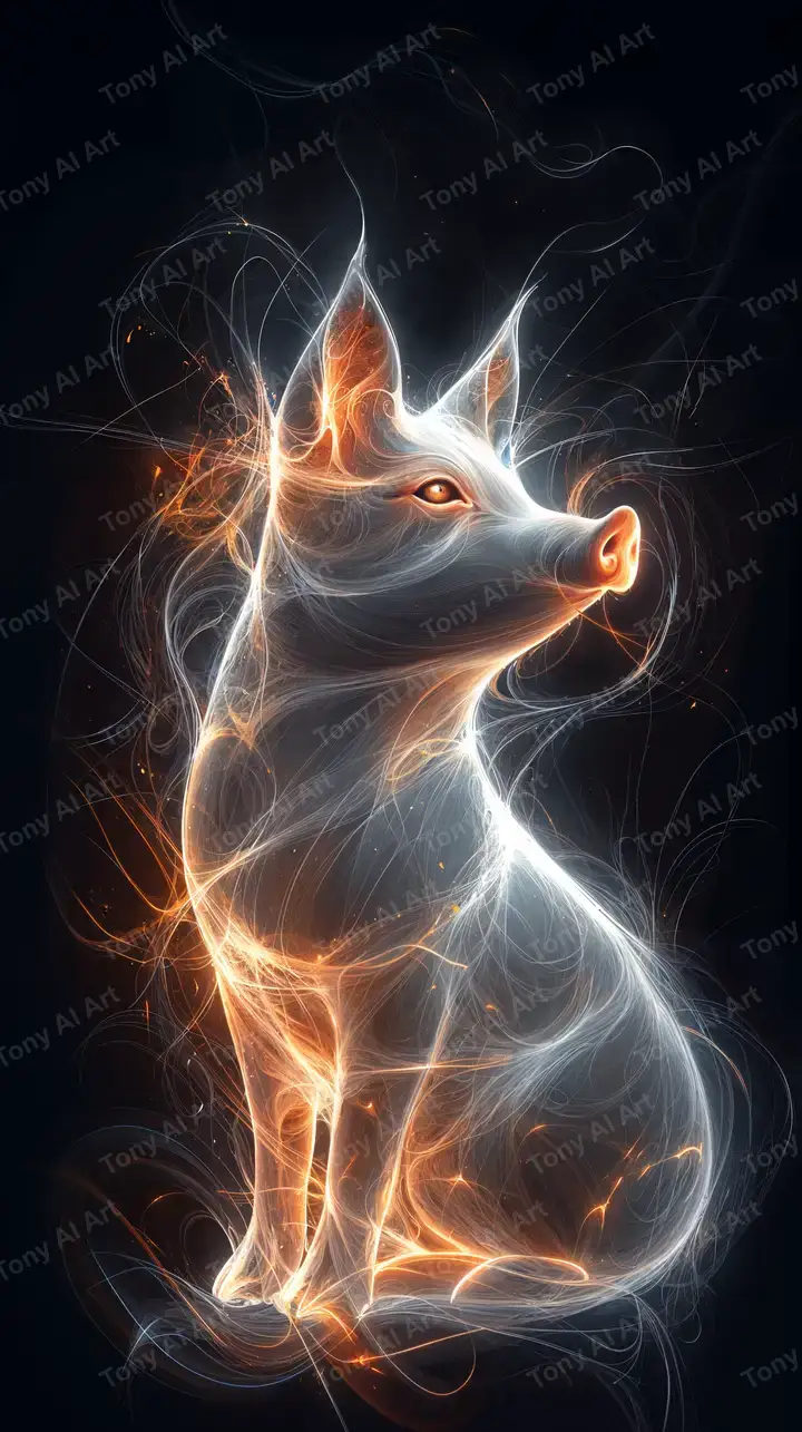 Mèo neon phát sáng với hiệu ứng cosmic energy, ánh sáng cam vàng và trắng bạc, hình nền AI art 4K tải miễn phí.