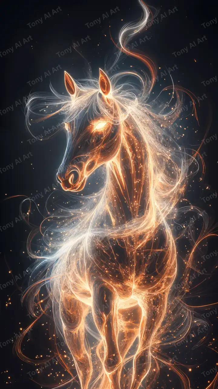 Hình nền ngựa neon vàng phát sáng AI art, hiệu ứng plasma cosmic, thiết kế tải miễn phí 4K HD.