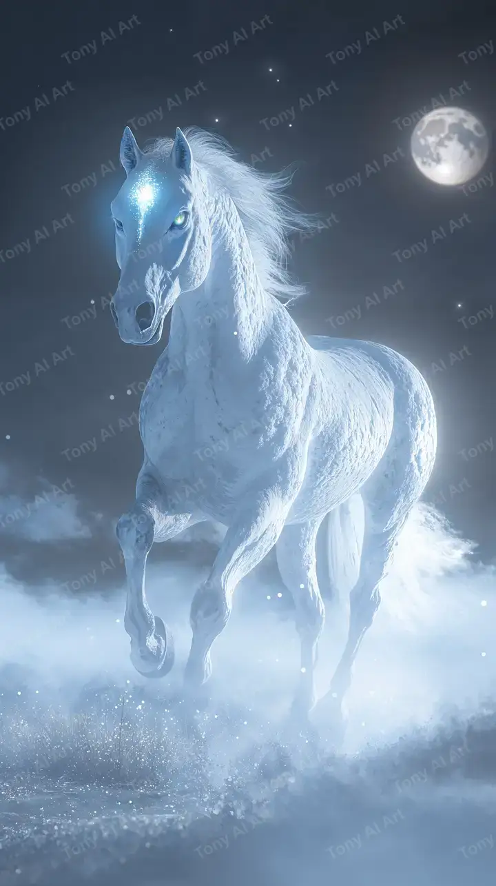 300 DPINgựa Trắng Thần Bí - Hình Nền AI Art Cosmic 4K