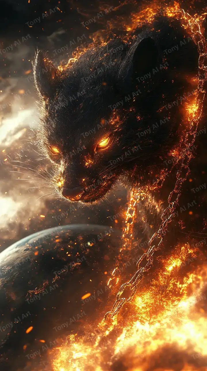 Mèo Linh Thần Lửa - Hình Nền AI Art Anime 4K