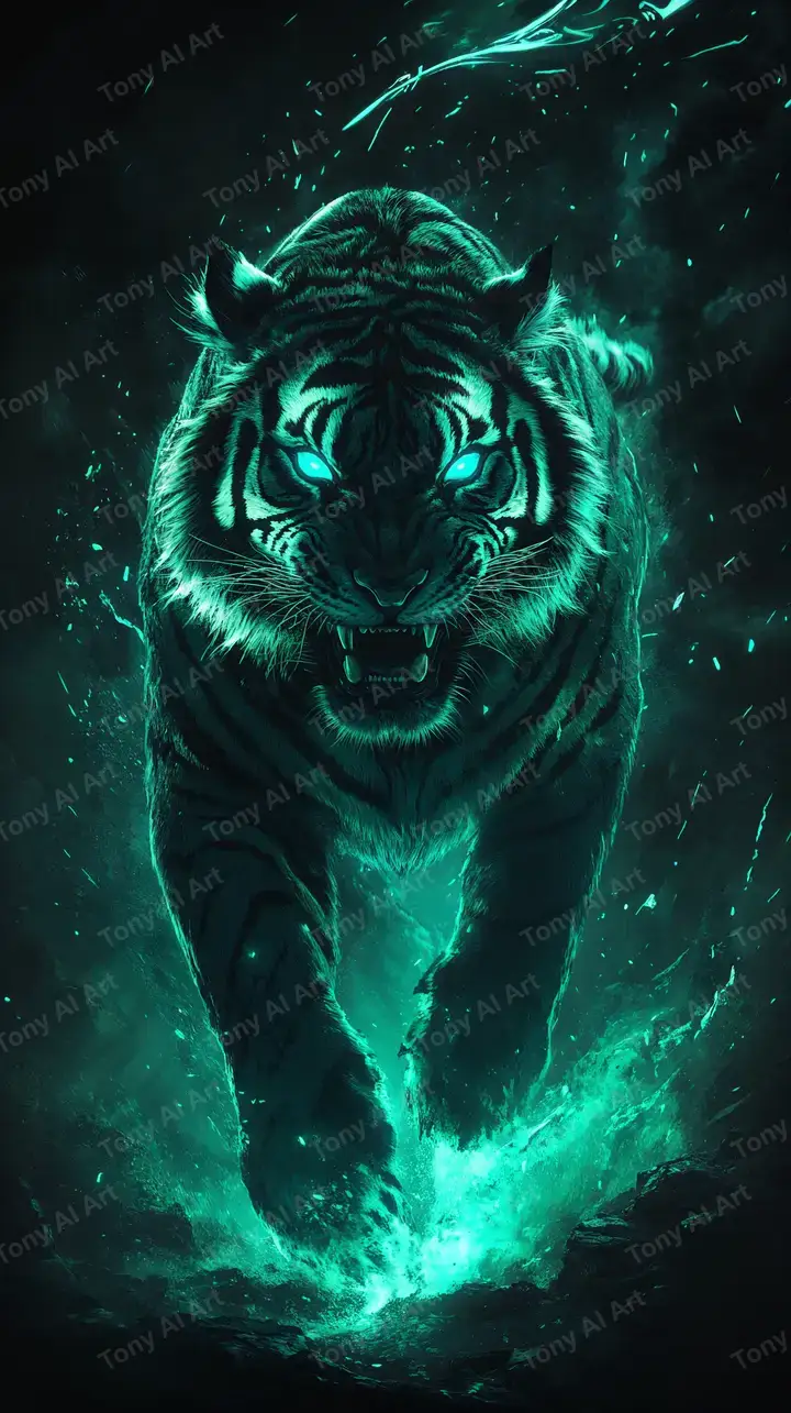 Hình nền hổ neon xanh lá hiệu ứng cosmic glow, đầy sức mạnh và bí ẩn, tải miễn phí 4K HD.