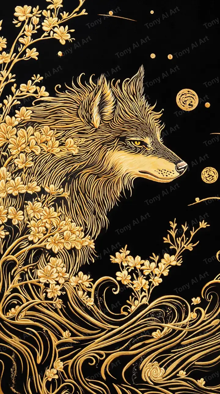 300 DPIChó Vàng Phong Thủy - Line Art Luxury Hình Nền 4K