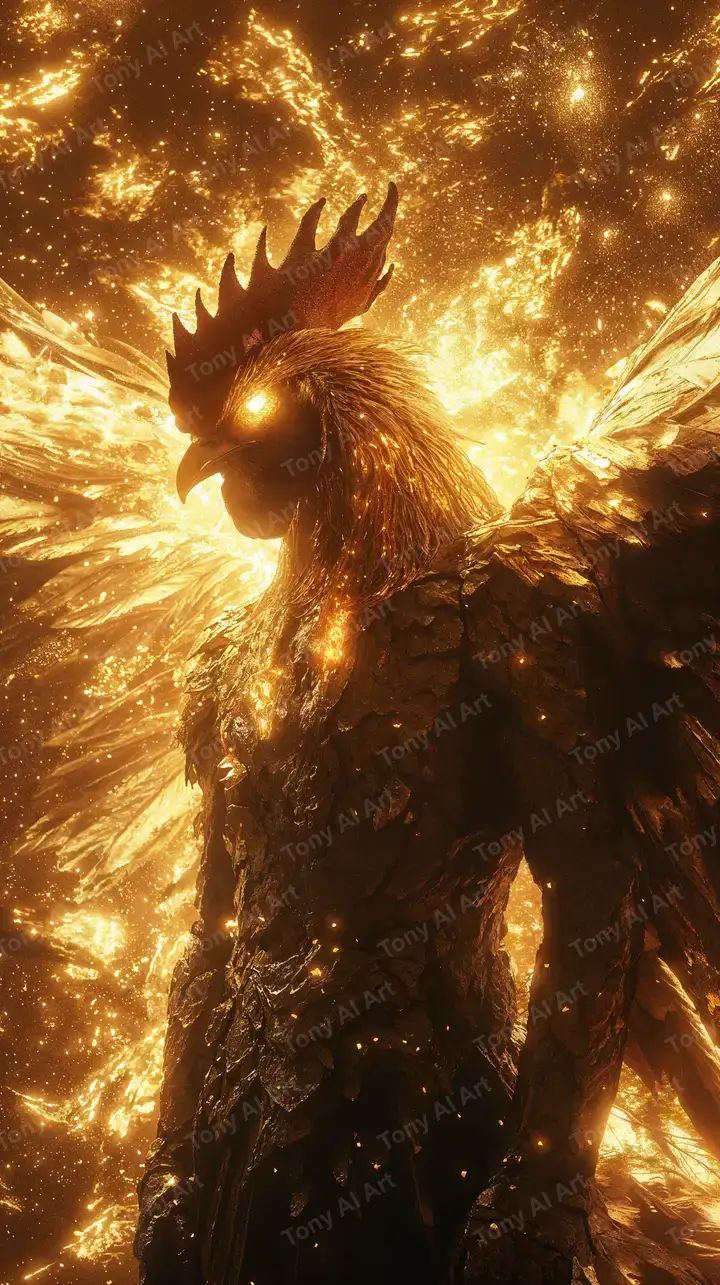 300 DPIGà Trống Vàng Phong Thủy - Hình Nền AI Art Cosmic 4K