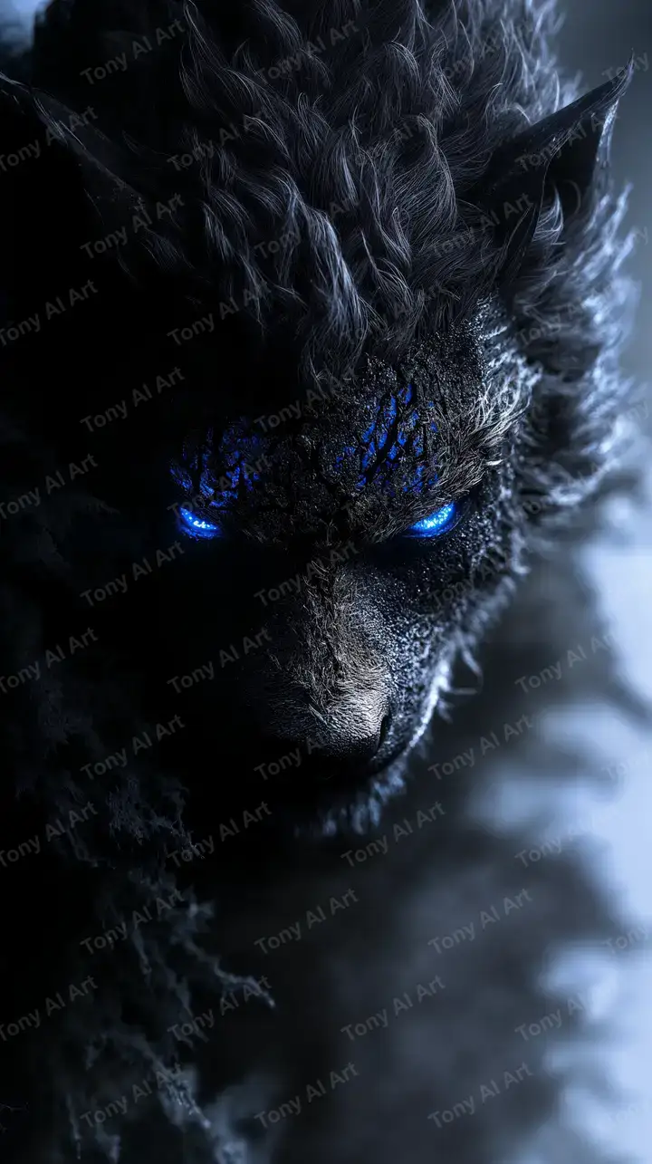 Hình nền sói mắt xanh neon AI art, hiệu ứng cinematic tối ưu, tải miễn phí 4K.